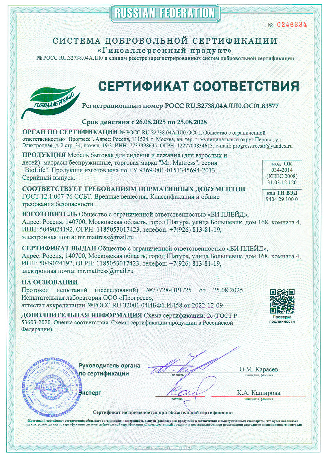 Сертификаты на продукцию Nature’S-Natura Sanat